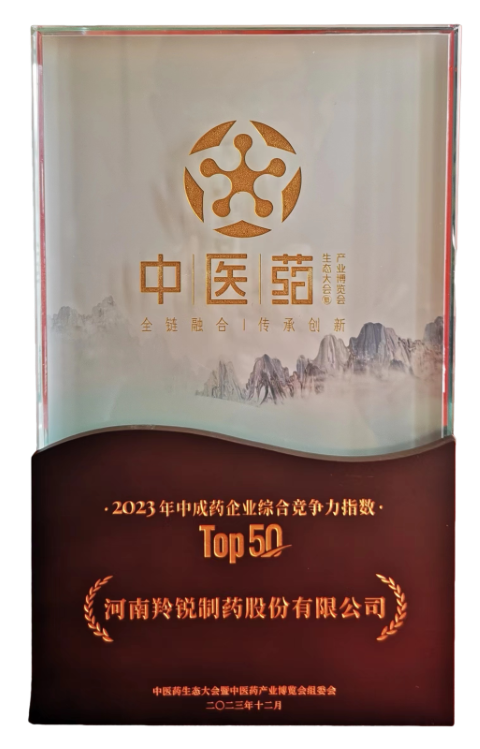 12月15日,首屆中醫(yī)藥生態(tài)大會暨中醫(yī)藥產業(yè)博覽會上隆重發(fā)布“2023年中成藥企業(yè)綜合競爭力指數(shù)top50”評選結果,羚銳制藥榮耀上榜。