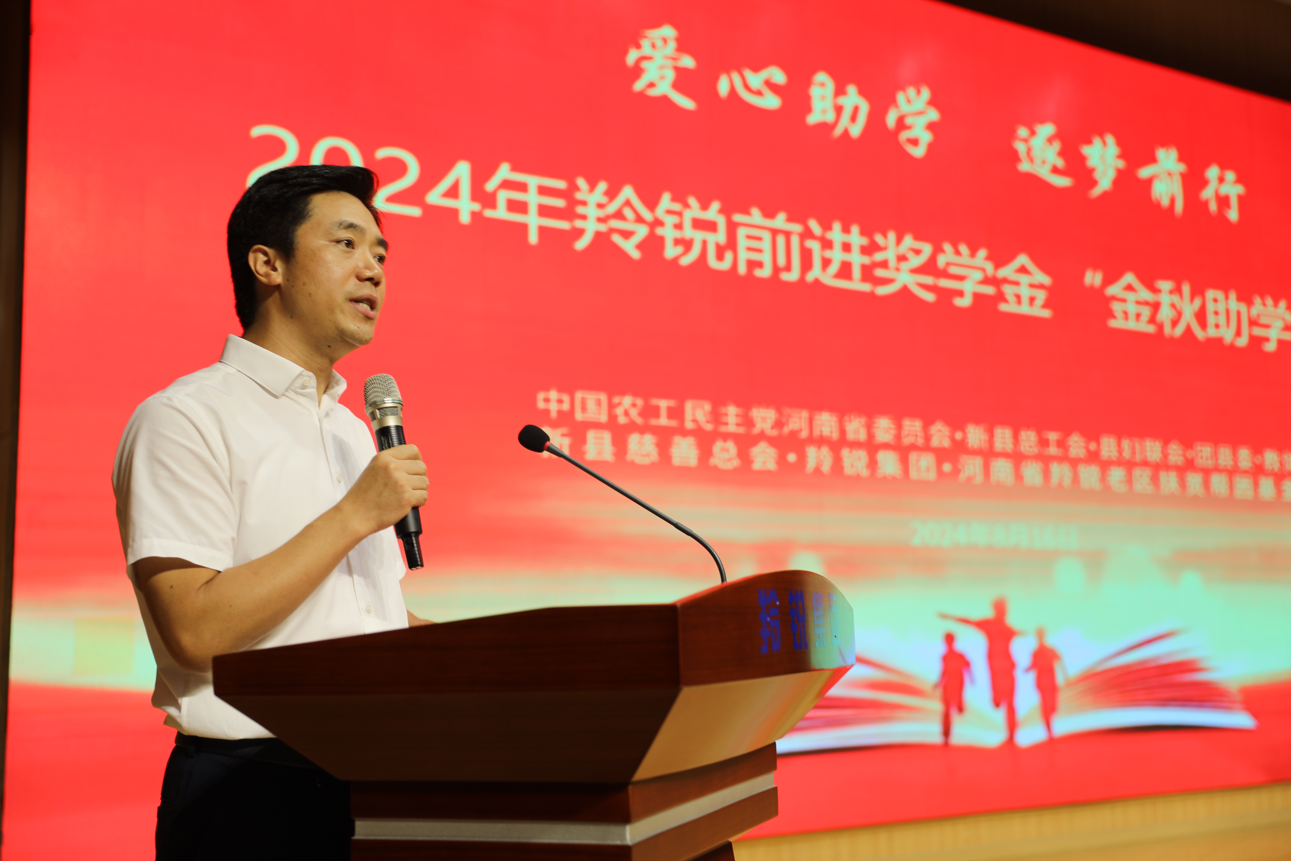 8月16日,中國農工民主黨河南省委·羚銳集團2024年“羚銳前進獎學金”頒發儀式在新縣羚銳百億貼基地舉行。農工黨河南省委委員、信陽市委會主委臧曼,新縣縣委常委、宣傳部部長余長江,農工黨信陽市委專職副主委杜一江,新縣慈善總會會長施業盛,羚銳集團董事長熊偉,新縣總工會、縣婦聯會、共青團新縣縣委、新縣教體局及相關高中負責人和學生代表等近300人參加了活動。