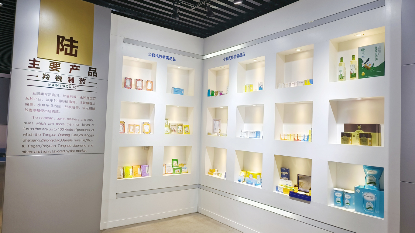 位于羚銳制藥百億貼廠區技術中心樓一樓,于2017年10月修建完善,面積約500平方米。展廳內圖文并茂,電子屏顯示器、圖片等詳細記錄了羚銳人三十余年來的創業歷程。展廳共分“發展歷程”“領導關懷”“產業扶貧”“產品介紹”“社會公益”“產業基地”“二次創業”等板塊,是羚銳發展史上重大事件、重要時刻的場景再現。展廳配有經過嚴格培訓、形象氣質皆佳的專職講解員4人。